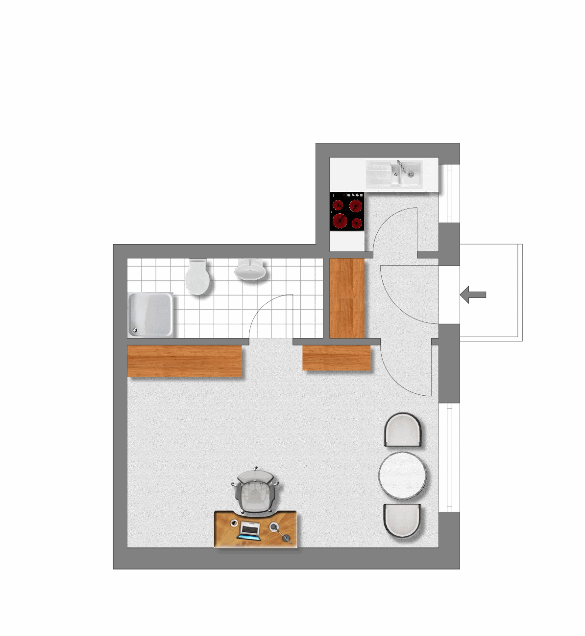 Der Zugang erfolgt bequem über einen separaten Eingang.