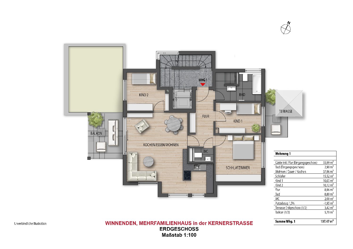 Wohnung 1 – Eingangsgeschoss/Erdgeschoss: