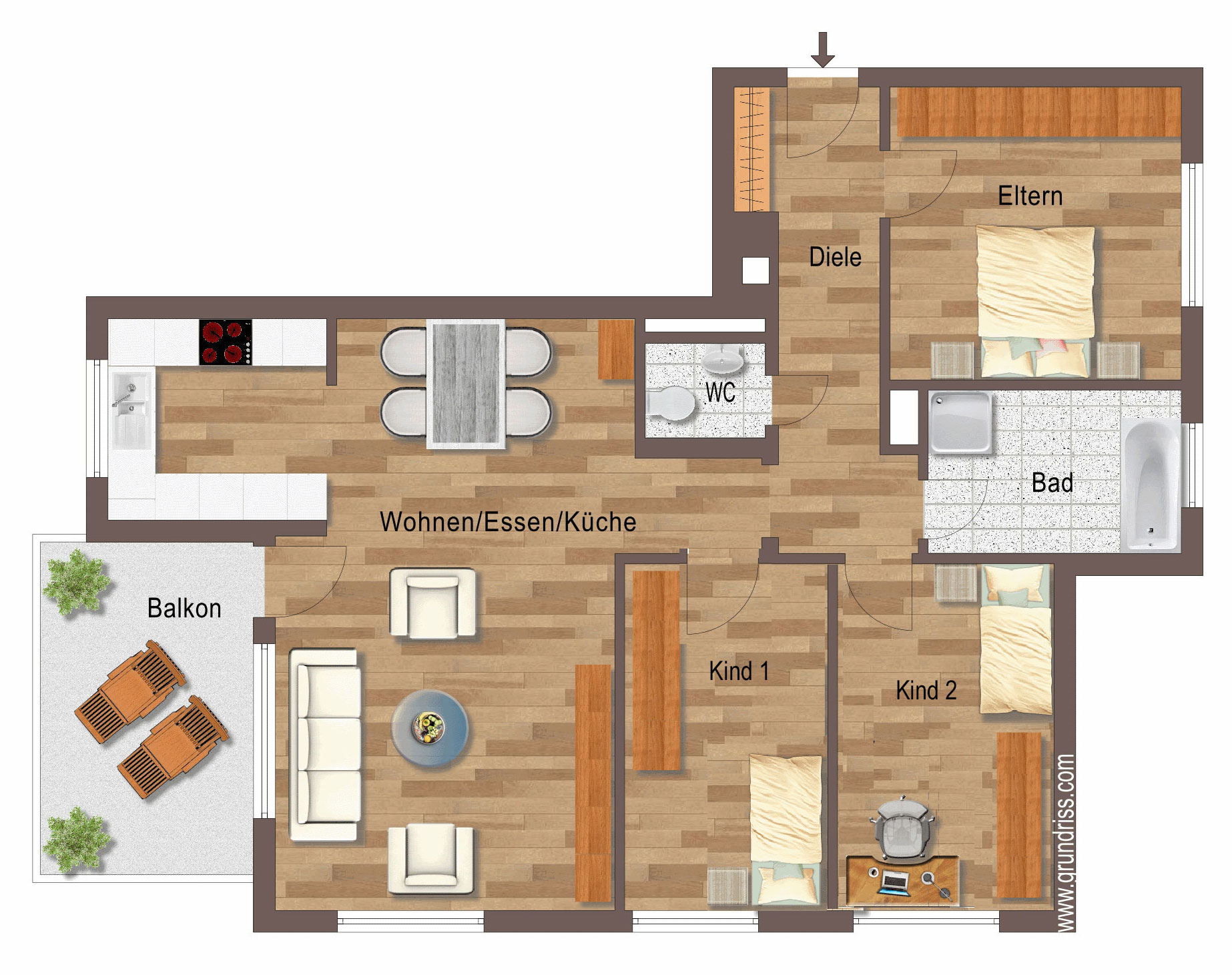 Beide Kinderzimmer sind identisch geschnitten und überzeugen durch ihre helle, freundliche Atmosphäre sowie eine praktische Raumaufteilung.